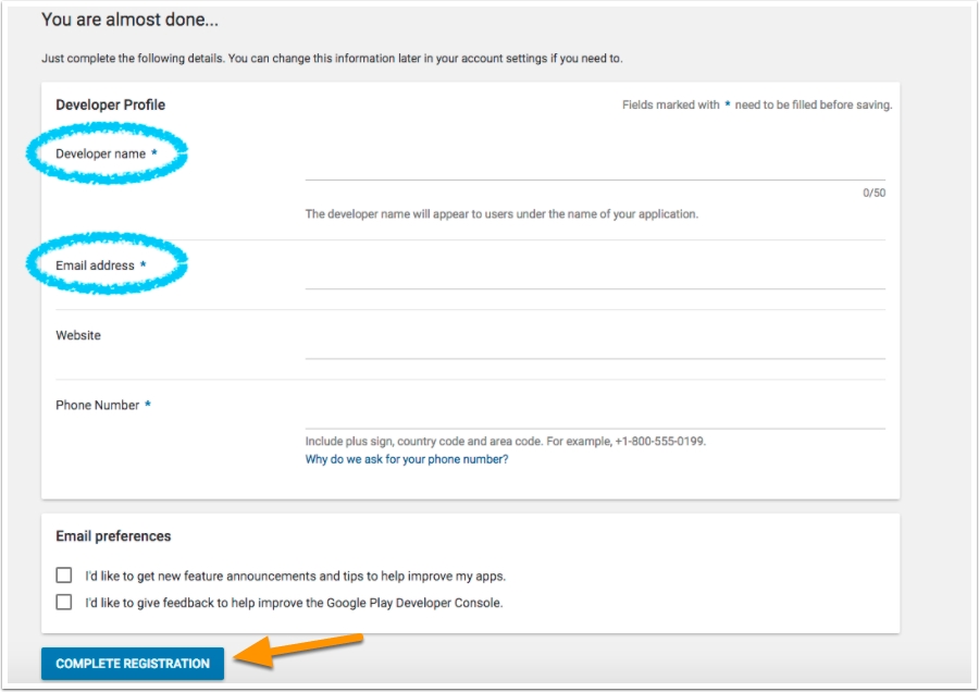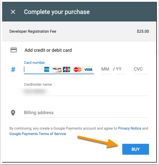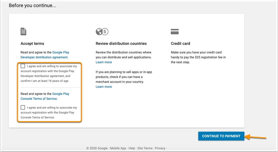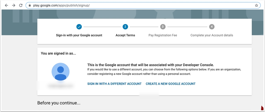 1. Go to the Google Play Developer Console <https://play.google.com/apps/publish/signup/> and sign up for an account.